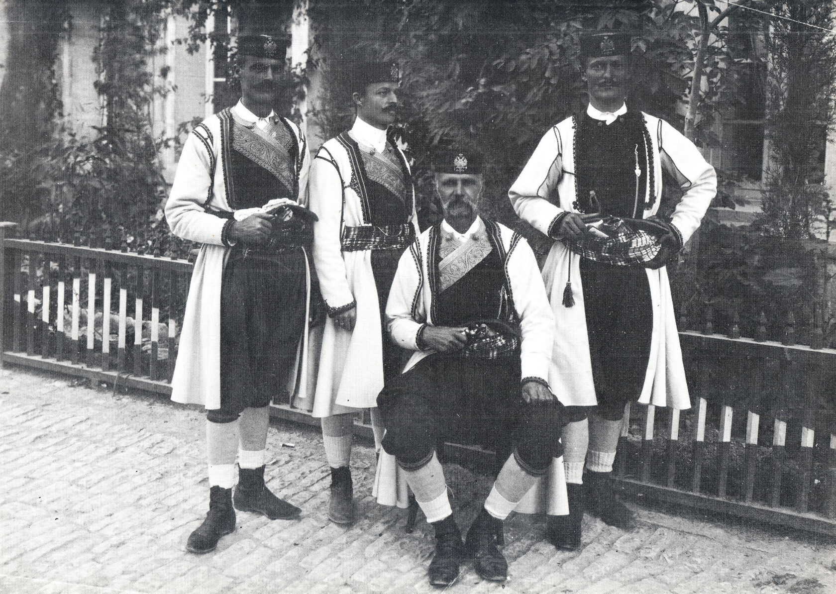 Выход иерусалимского патриарха Герасима и консула А.Ф.Круглова из церкви св. Александра Невского (после её освящения). 22 мая 1896 г. Изображение предоставлено ГМИР.